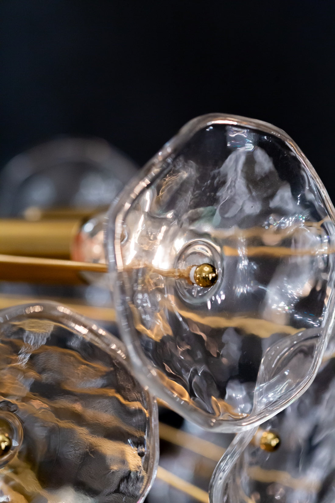 The Minera is an exceptional and distinctive Italian chandelier that has been carefully crafted in-house and exudes true Venetian charm. The beautiful Murano crystals that surround the chandelier create an elegant and classic look. Because the crystals have a certain wave structure, the color spectrum breaks in a special way. This can be seen in the crystal, the chandelier and even in the surroundings of the chandelier.