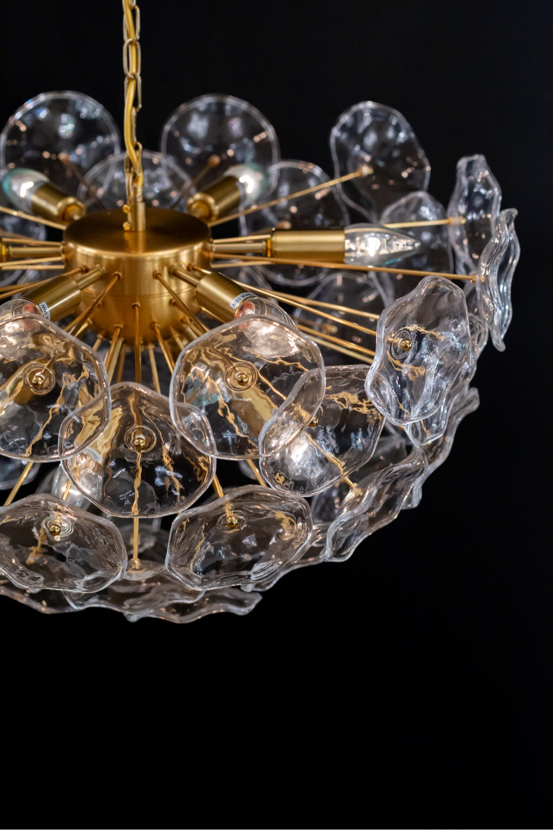 The lamp itself is made from the finest European materials and assembled entirely by hand, with the frame being a brass color that will last for years. Experience the appeal of this beautiful Italian chandelier, based on the ancient Venetian design combined with the timeless design of the Murano leaves. With this, the Minera is clearly a testament to craftsmanship and what will elevate your space now and for generations to come.
