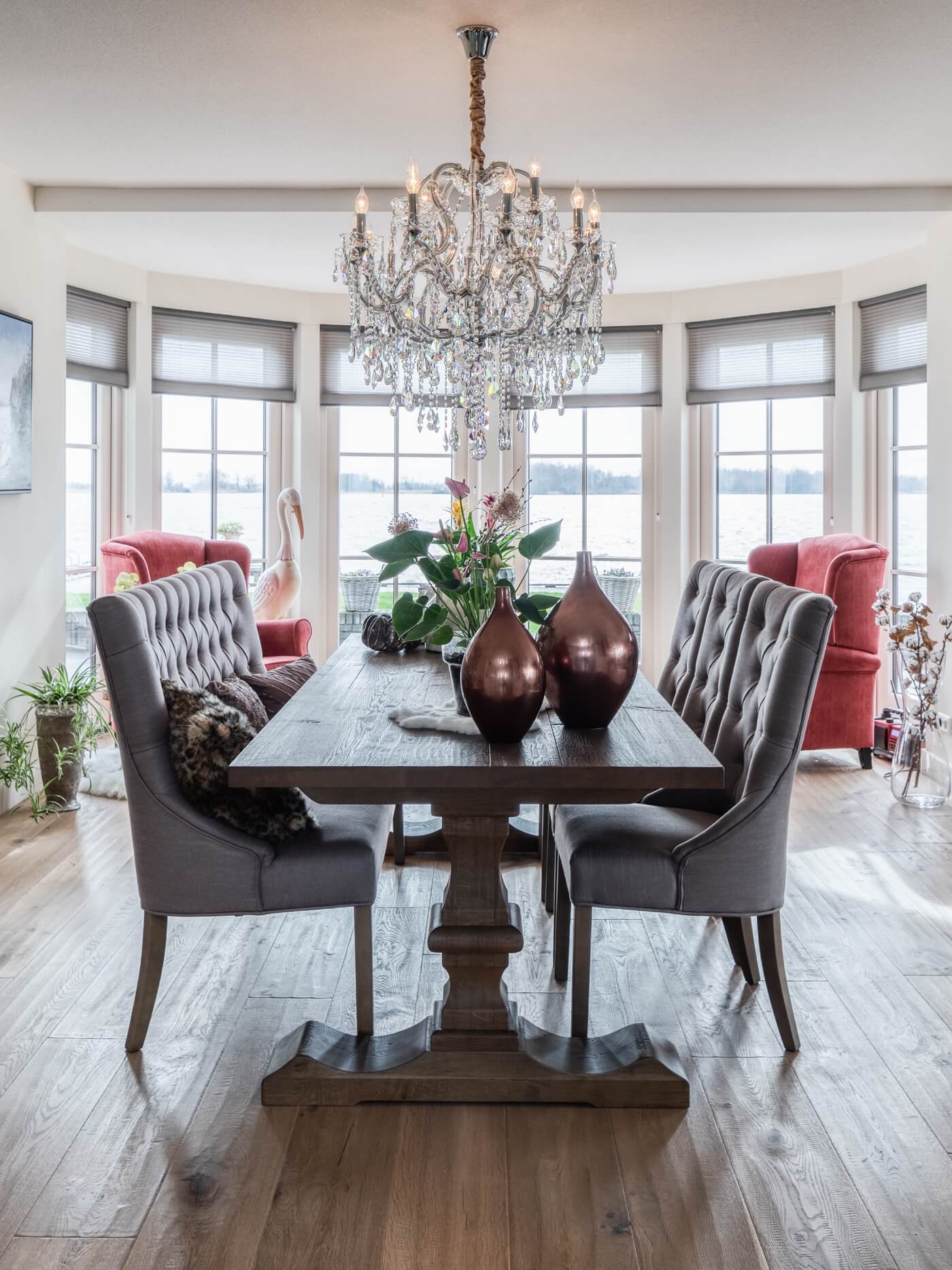 De Elliott beschikt over 15 lichtpunten (E14), compatibel met zowel gloei- als LED-lampen, en zorgt voor een warme, uitnodigende gloed. Deze kroonluchter, gemaakt van de beste Europese materialen, wordt met de hand vervaardigd in Nederland.
