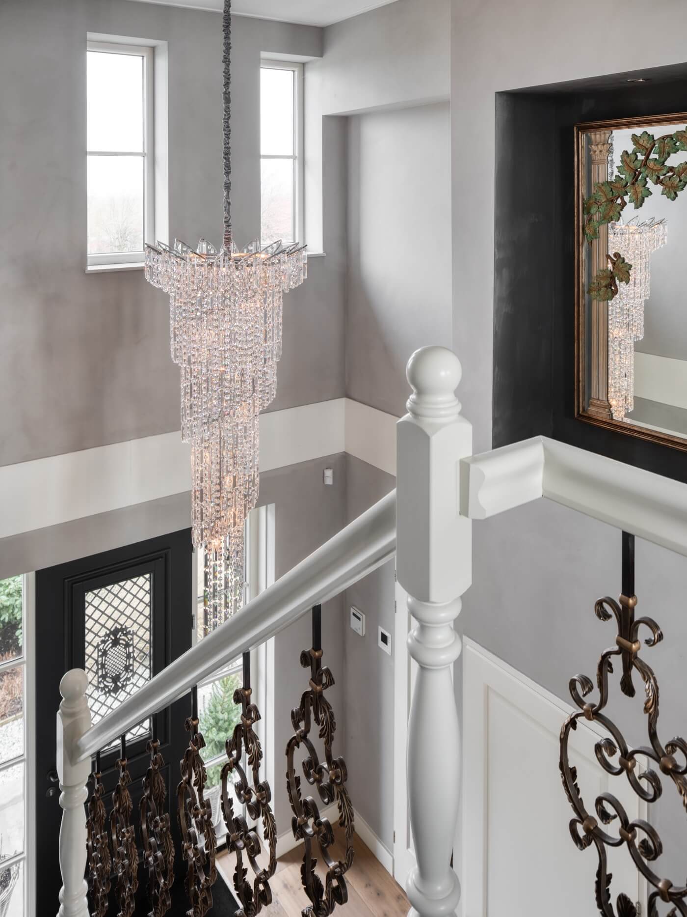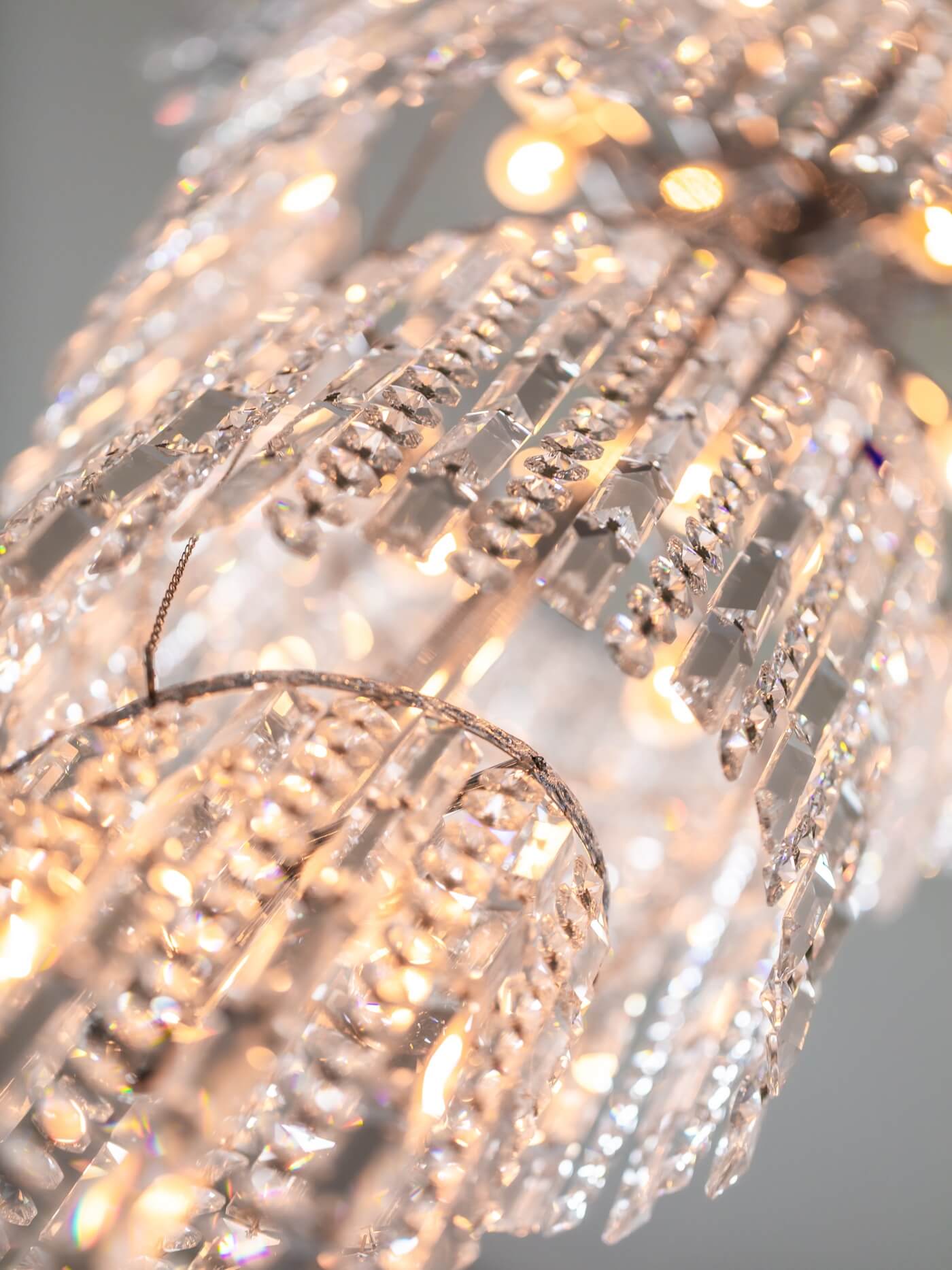 Elk aspect van de Elliott straalt kwaliteit uit. Het ijzeren frame van de kroonluchter, verrijkt met glasstroken en rozetten, draagt talloze kristallen pegels. Samen creëren ze een adembenemend lichtspektakel. De unieke ovale vorm, langer in hoogte dan in breedte, zorgt voor een indrukwekkend silhouet van de lamp.