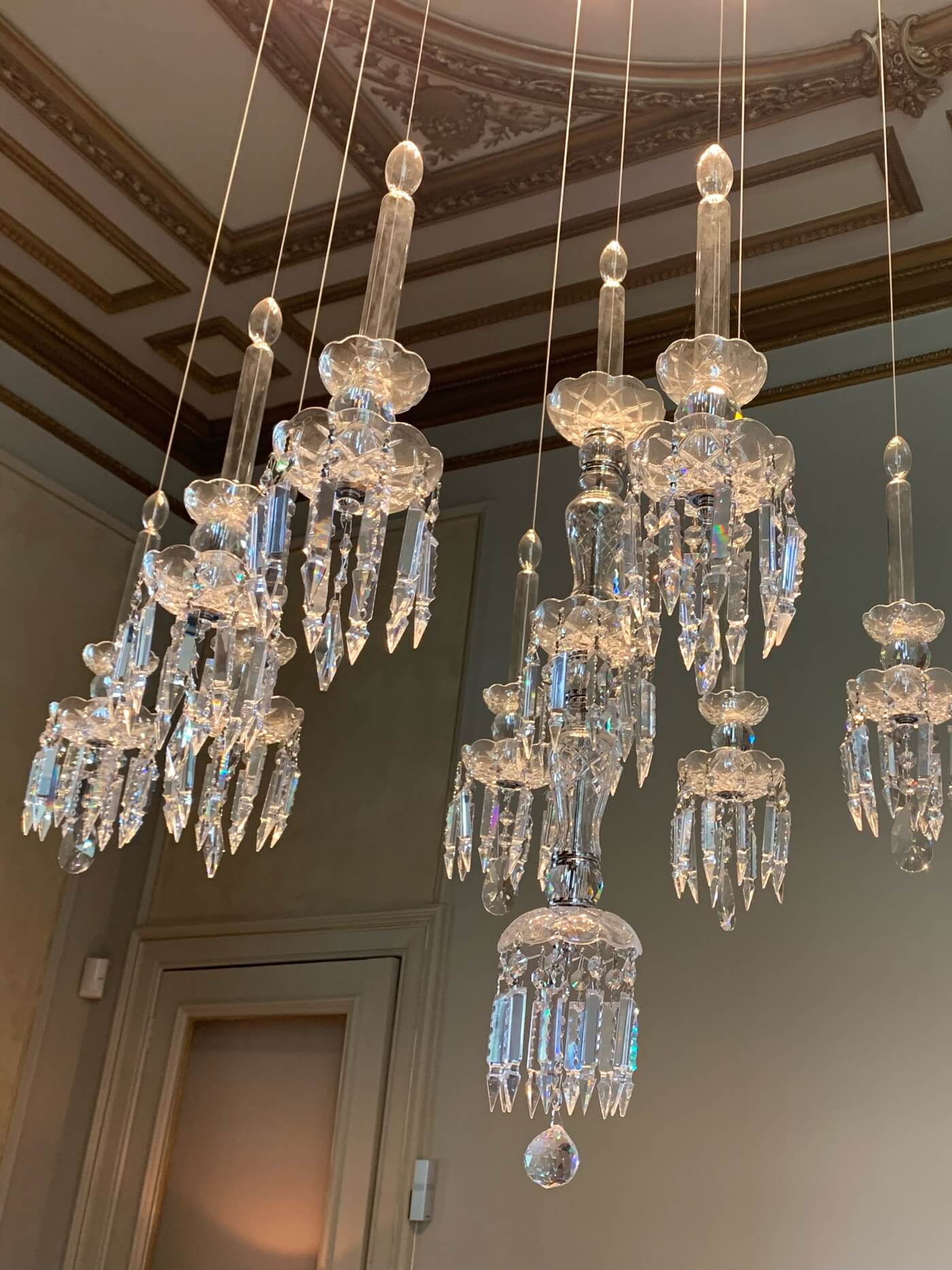 De kristallen Floating Candles van deze kroonluchter hangen elk aan een ultra dun draadje, voor het oog vrijwel onzichtbaar, wat het zwevende effect van het kristal creëert. Deze bijzondere combinatie creëert een unieke schittering en een prachtig 3D-effect in de ruimte. The Hermitage variant van de Floating Candle serie heeft een unieke pegel waarbij het einde overloopt in een punt.