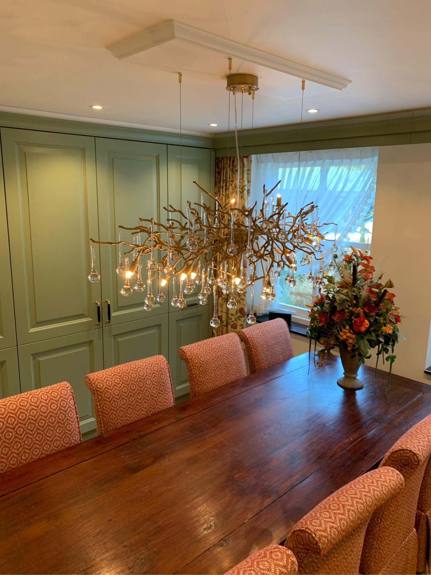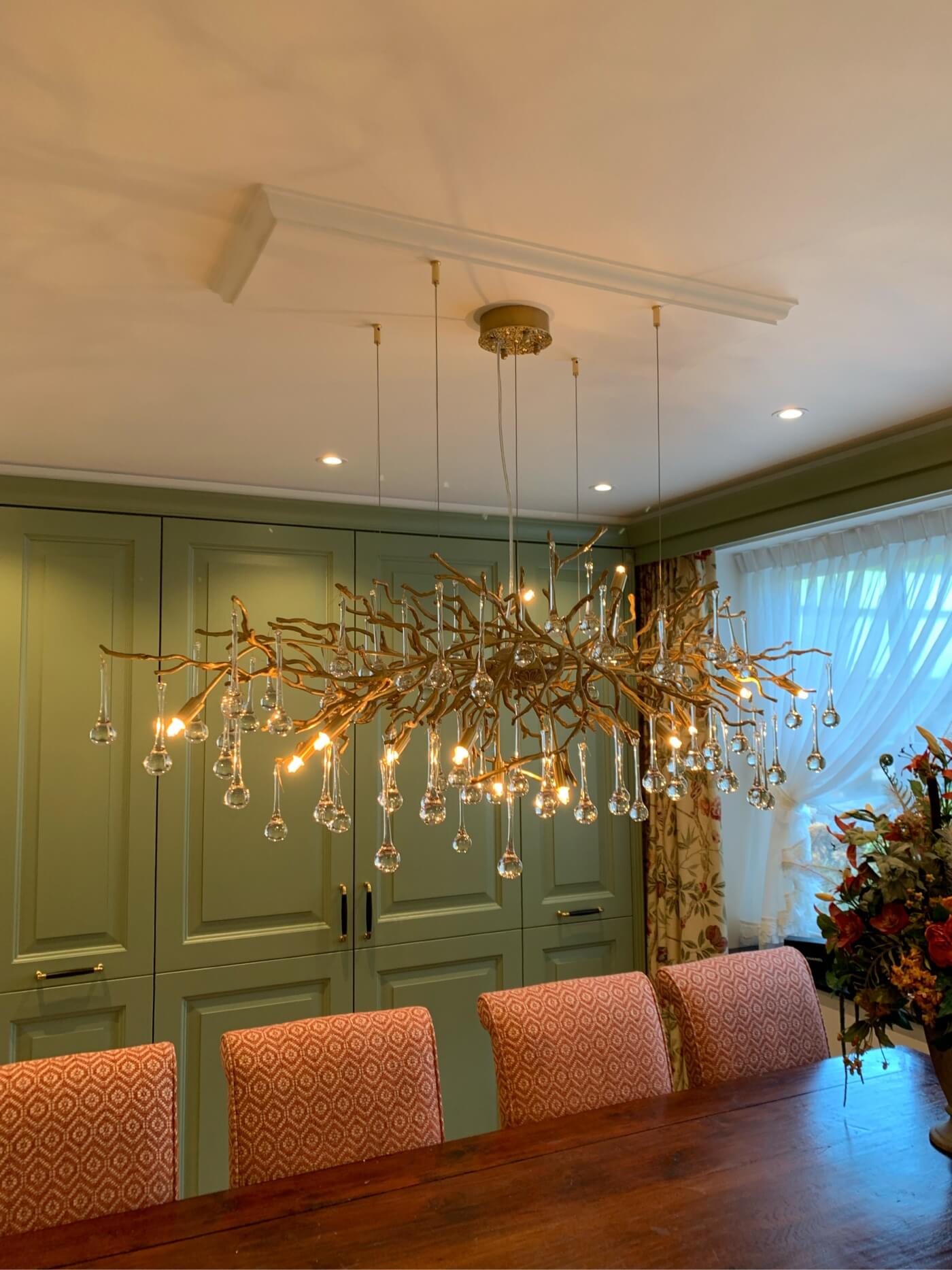 Bijzonder aan de Elina is de sublieme combinatie van het bronzen frame en de sierlijke kristallen druppels. Samen creëren ze een uniek, bijna zwevend effect dat nog wordt versterkt door de tien zorgvuldig geplaatste lichtpunten. Of ze nu boven een keukeneiland hangt of over uw eettafel zweeft, de Elina verheft elke ruimte met haar stralende aanwezigheid.
