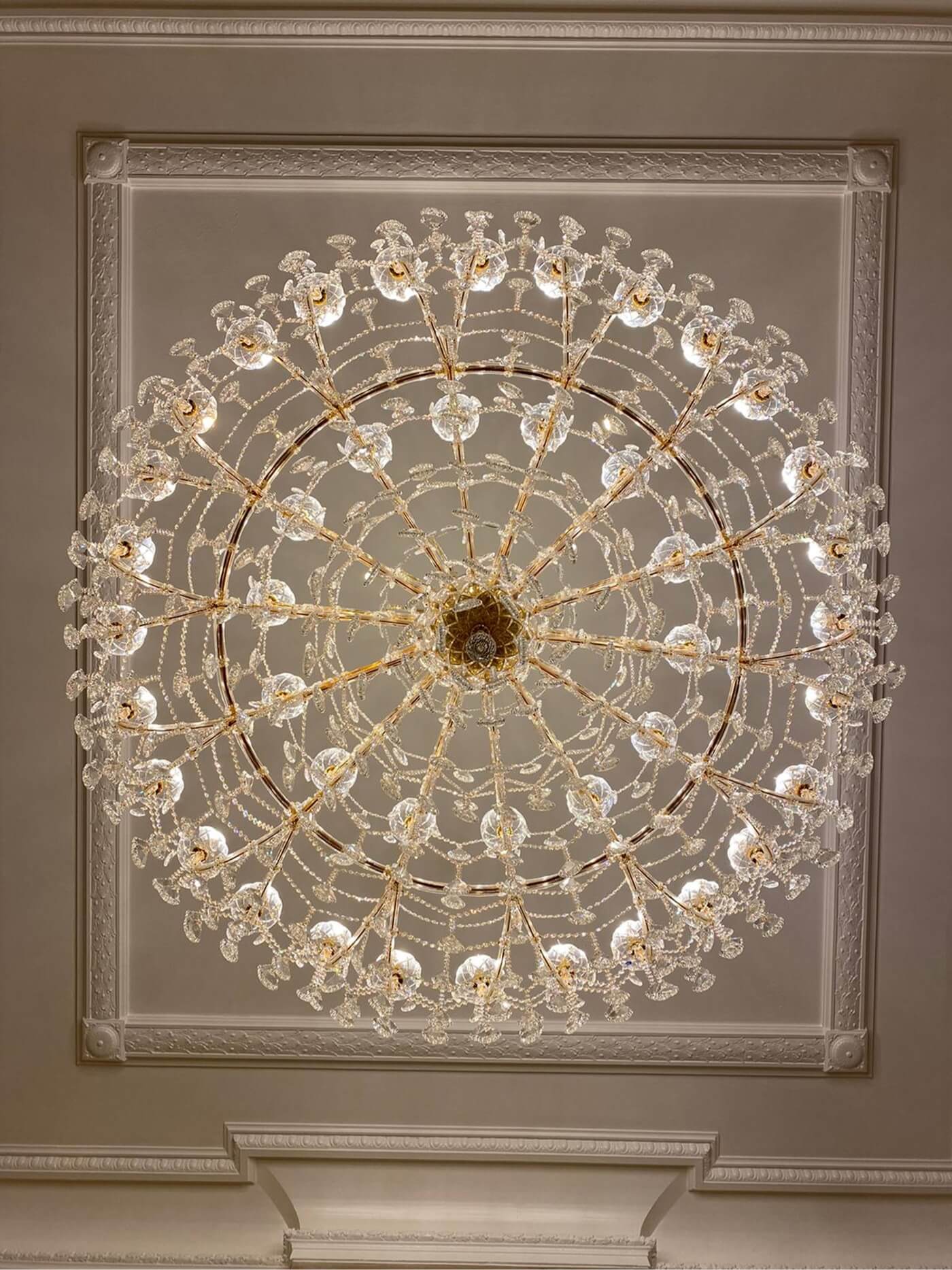 Deze weelde aan licht, versterkt door de schittering van het kristal, kan bij juiste omstandigheden zelfs kleine regenbogen in en rond de kroonluchter projecteren. Zowel normale gloeilampen als LED-lampen kunnen in deze lichtpunten worden geplaatst.